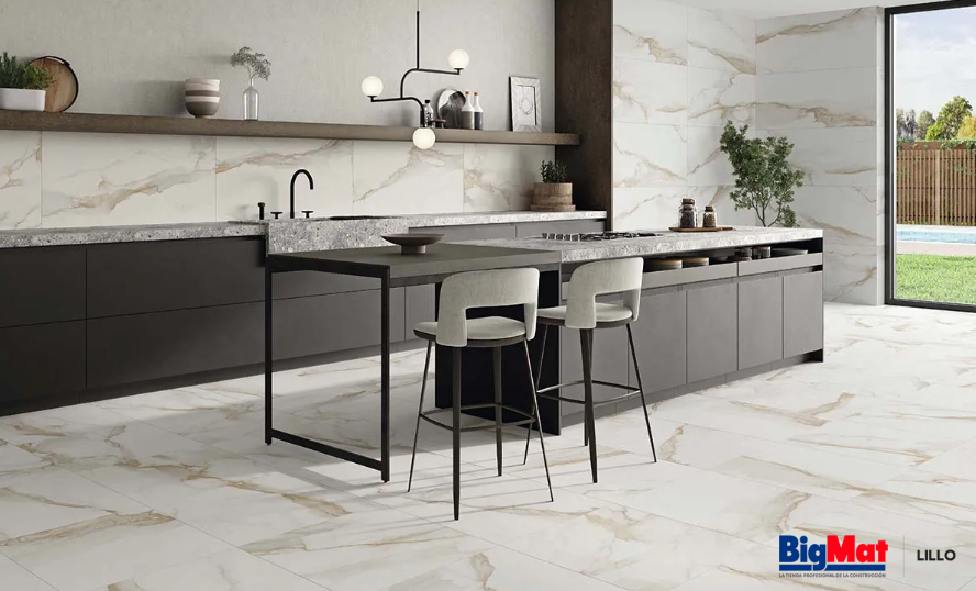 Revestimiento, con acabado efecto mármol.