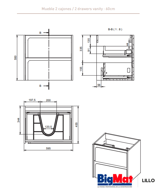 * Mueble suspendido 2 cajones.
