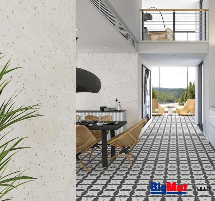 Revestimiento de pasta blanca rectificada, de la Colección Stravaganza, para juntas finas.