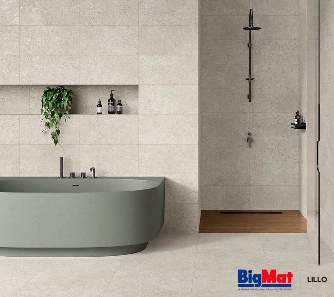 Azulejo color beige, fácil de combinar.