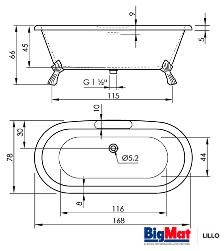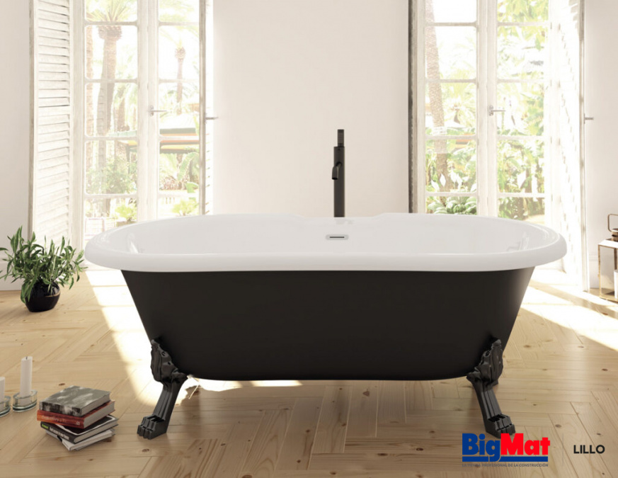 Bañera acrílica exenta con desagüe click-clack y rebosadero integrado blanco brillo