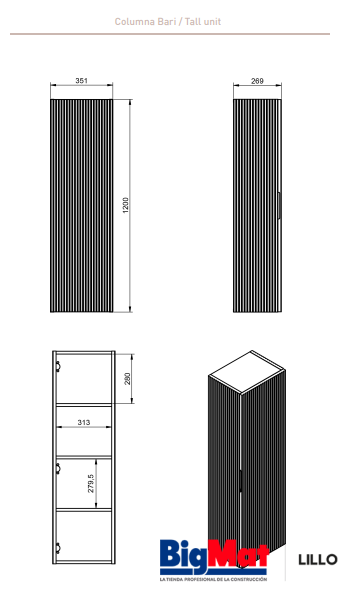 Mueble de baño auxiliar de la serie BARI.