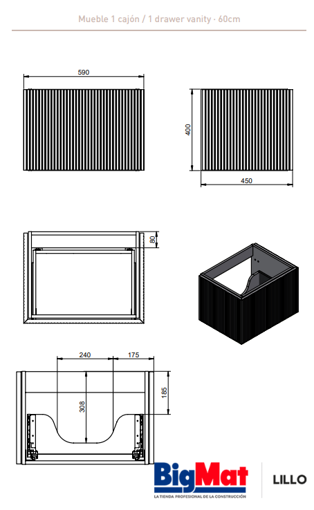 Mueble de la serie BARI, suspendido de 1 cajón.