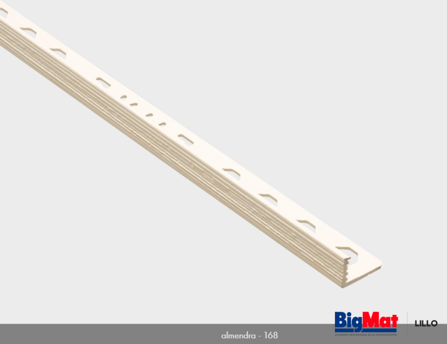 Este perfil es polivalente, se puede utilizar como remate para proteger y decorar aristas de revestimiento cerámicos, separador de pavimento, remate de encimera o peldaño.