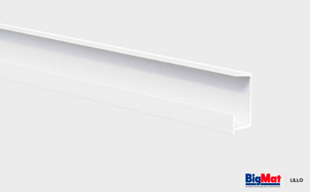 Perfil polivalente, puede ser colocado como listel decorativo, rodapié minimalista o remate superior, en paredes con placas de yeso laminado o revestimiento cerámico.