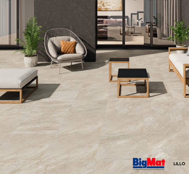 Pavimento porcelanico destonificado antihielo. Uso para suelos y paredes tanto de interior como de exterior. Pavimento de la serie ICARIA de color beige. Medidas 33.3x33.3 (ancho x alto).