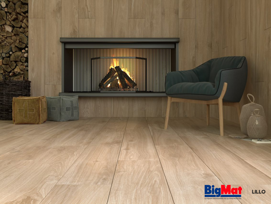 Pavimento WALKYRIA MAPLE, de la serie WALKYRIA de material porcelánico con bordes rectificados para juntas finas. Uso para suelos y paredes en estancias de interior y exterior. Excelente resistencia a las ralladuras  y a las heladas. Medidas: 20 x 120 cm (ancho x alto).