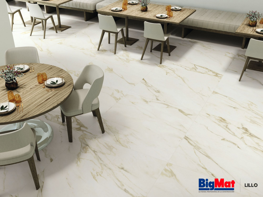 En pavimento, al ser alto brillo, se recomienda protegerlo durante la colocación