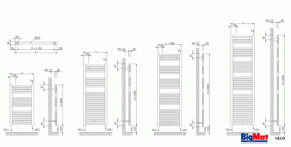 Acabado Blanco RAL 9016 o negro RAL 9005